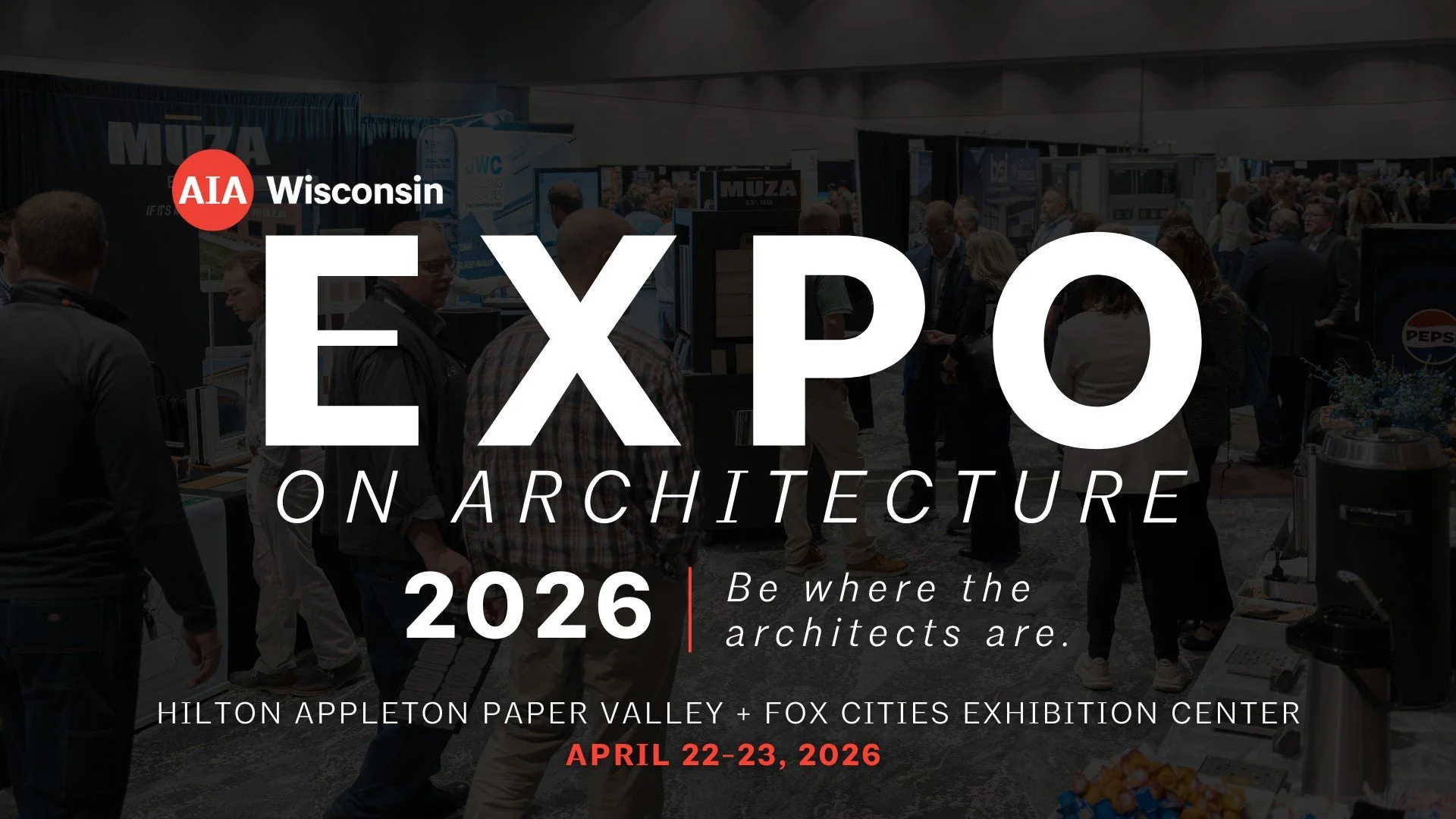 The 2026 AIA Wisconsin Expo on Architecture will take place Wednesday, April 22 and Thursday, April 23 at the Fox Cities Exhibition Center in Appleton, Wisc.